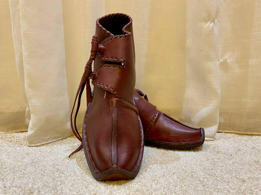 Step into history with our collection of handcrafted Viking leather shoes, made from genuine Moroccan leather and inspired by authentic Viking and Medieval footwear designs. Each pair is shaped, cut, and stitched by hand using traditional methods passed down through generations of Moroccan leather artisans.