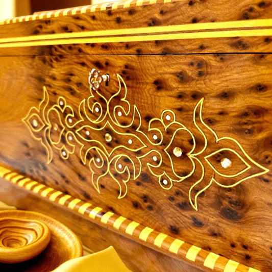 Explore our exclusive collection of handcrafted wooden jewelry boxes, made from authentic Moroccan Thuya burl wood. Each piece features unique grain patterns, a natural cedar-like fragrance, and exceptional craftsmanship passed down through generations.